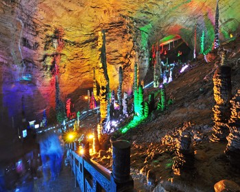 Продолжим исследовать парк «Чжанцзяцзе». Сегодня мы посетим пещеру Жёлтого дракона. Вход в подземное царство «охраняет» скульптура в виде большой головы фантастического существа. Вместо пещеры можем отправиться на озеро Баофэнг, спрятанное посреди покрытых зеленью гор.