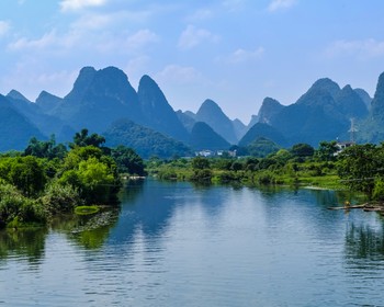 Сегодня отправимся к скале Слоновий хобот — каменная громада напоминает огромного слона. Дальше пересядем на плоты с мотором и устроим круиз по реке Ли: будем любоваться горами с острыми вершинами, зарослями бамбука по берегам и бескрайними лугами, где бродят буйволы, работают крестьяне и рыбаки.