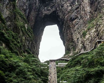 Сегодня мы отправимся к горе Тяньмэньшань. Нас ждёт подъём по самой длинной канатной дороге в мире протяжённостью 7,5 км, ведущей к вершине горы и знаменитым «Небесным вратам», расположенным на высоте 1518 метров.