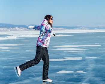 Обед организован прямо на льду Байкала, в окружении зимних пейзажей. После обеда — катание на коньках по гладкой, прозрачной поверхности озера.