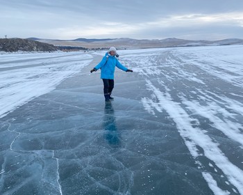 Сегодня нас ждёт красивейший путь по ледовой дороге к острову Ольхон. Маршрут проходит через географический центр озера. Приготовьтесь увидеть прозрачный лёд, точнее, бесконечные ледовые просторы! Рассмотрим голубые глыбы, трещины, белые пузыри и проведём ритуал «Поцелуй Байкала».