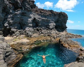 После искупаемся в природных бассейнах — чарках, образованных лавовыми потоками прямо на побережье океана.