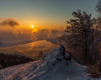 Отправляемся в горы — в Саяны. Прибудем в посёлок Аршан. Пейзажи вас ждут невероятные: густой сосновый лес, застывший во льдах водопад на реке Кынгарга, буддистский дацан, особенно эффектно выглядящий на фоне снежных вершин.