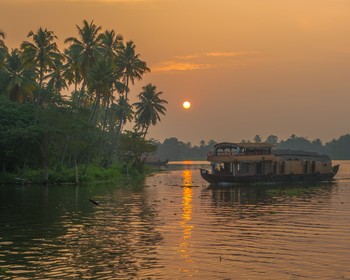 Позавтракаем, займём места в машине и поедем в Аллеппи. Расстояние — 140 км. Заселимся в хаусбот (плавучий дом), и будем наслаждаться видами: бескрайние рисовые поля, кокосовые пальмы — настоящие джунгли!