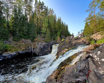 После завтрака в 9:00 отправимся в Северное Приладожье. По пути сделаем остановку в Долине героев у памятника «Крест скорби» и у водопадов Ахинкоски, где проходили съёмки фильма «А зори здесь тихие…». При желании можно пройти по экотропе с подвесными мостиками (за доплату).