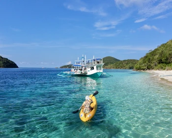 Наше приключение начинается в Эль-Нидо — месте, где густые джунгли встречаются с бирюзовыми водами. На традиционной филиппинской лодке отправляемся в морскую экспедицию по нетронутым уголкам северного Палавана — уединённым островам с дикими пляжами, скалистыми бухтами, впечатляющими обилием живности коралловыми рифами. Сегодня сделаем первые остановки, чтобы искупаться, исследовать пещеры или просто расслабиться под пальмами. На борту включены питание от шеф-повара, напитки и использование каяка.