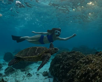 Завтрак в отеле. Далее — снорклинг у домашнего рифа: прозрачная вода, разноцветные рыбы и морские черепахи. Можно попробовать погружение и снять кадры на GoPro. Вечером — ужин, неформальное общение и настольные игры.