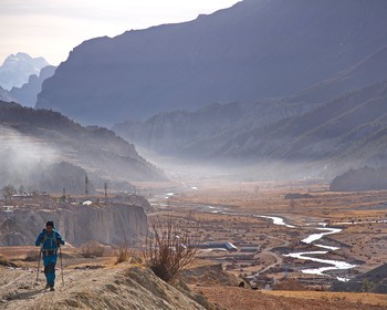 Завершив подъём, начнём долгий спуск — около 1700 метров вниз до деревни Муктинатх. По пути откроются впечатляющие виды на Дхаулагири и Нилгири. Вечером заселимся в отель, отпразднуем переход через Торонг-Ла и подведём итог нашему путешествию вокруг Аннапурны.