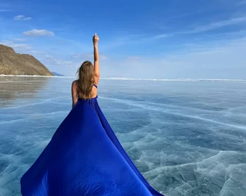 Сегодня вы увидите бескрайние Тажеранские степи и гладь Байкала, опутанную паутиной трещин, с высоты птичьего полёта. Побываете в месте с самым прозрачным льдом и покатаетесь на коньках. Подкрепитесь на фуршете и согреетесь чаем на травах и озёрной воде из самовара. Обязательно попробуете фирменную настойку в коктейле «Поцелуй Байкала». Рассмотрите всевозможные торосы и глыбы, а самые смелые девушки смогут сделать фото в купальнике.